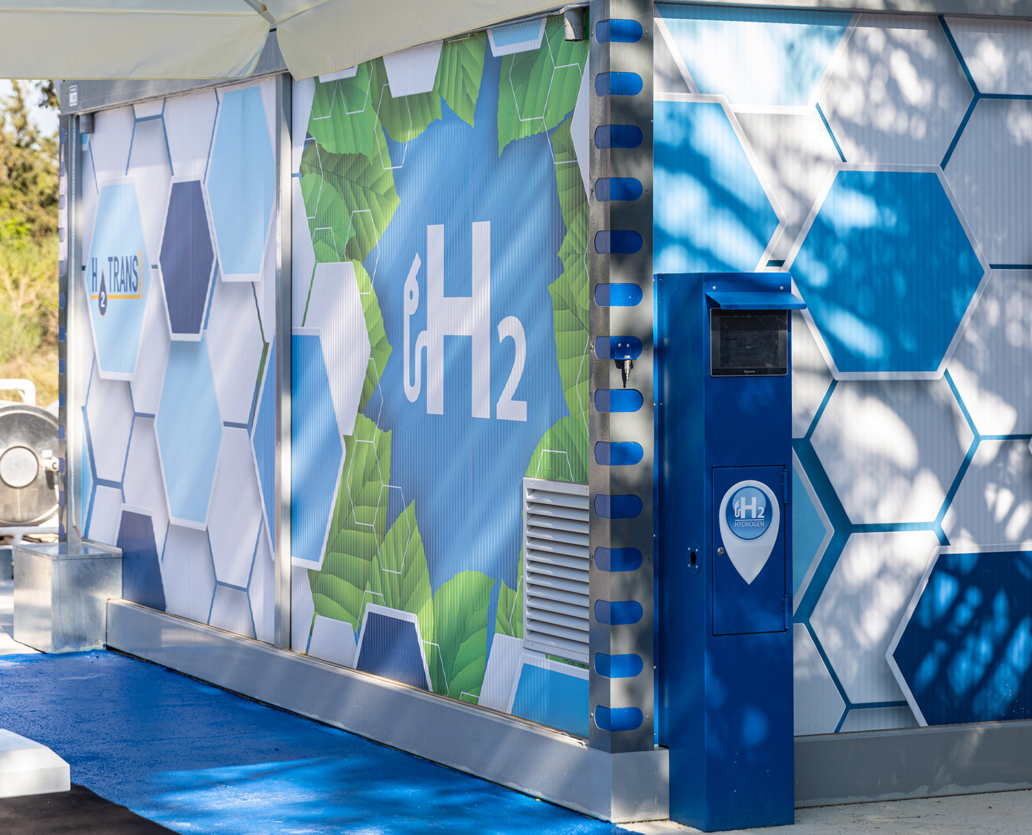 Η εγκατάσταση περιλαμβάνει μονάδα παραγωγής «πράσινου» υδρογόνου μέσω ηλεκτρόλυσης νερού με χρήση ηλεκτρικής ενέργειας από φωτοβολταϊκά, καινοτόμο συμπιεστή υδρογόνου στα 200 bar, δεξαμενές αποθήκευσης υδρογόνου σε υψηλή πίεση και σύστημα ανεφοδιασμού των οχημάτων με καύσιμο υδρογόνο.