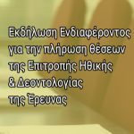 Πρόσκληση εκδήλωσης ενδιαφέροντος για την πλήρωση θέσεων της Επιτροπής Ηθικής και Δεοντολογίας της Έρευνας
