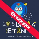 Νέα ημερομηνία! ΒΡΑΔΙΑ ΕΡΕΥΝΗΤΗ 2018 Παρασκευή 5 Οκτωβρίου στο ΔΗΜΟΚΡΙΤΟ 17:00-24:00 Η ΒΡΑΔΙΑ ΕΡΕΥΝΗΤΗ θα […]