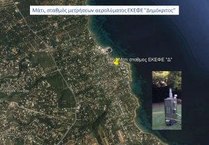 Το ΕΚΕΦΕ «Δημόκριτος» εγκατέστησε στις 11/8/2018 εξοπλισμό δειγματοληψίας και όργανα συνεχούς καταγραφής και μέτρησης ατμοσφαιρικών παραμέτρων στο Μάτι Αττικής, 150 μ απο την ακτή και είναι σε θέση να παρουσιάσει μια αρχική αποτύπωση της κατάστασης για τον ατμοσφαιρικό αέρα και την έκθεση του πληθυσμού στα αιωρούμενα σωματίδια ΑΣ10, τη φύση και τη χωροχρονική τους μεταβολή καθώς και σε κάποια από τα κύρια συστατικά τους όπως αιθάλη και βαρέα μέταλλα. Οι μετρήσεις πραγματοποιούνται στον προαύλιο χώρο κατοικίας στο Μάτι Αττικής το οποίο δεν έχει επηρεαστεί από την πυρκαϊά, οπότε έχει αντιπροσωπευτική έκθεση στο ατμοσφαιρικό αερόλυμα της ερύτερης περιοχής.