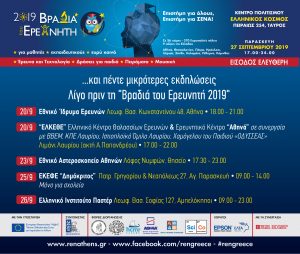 Βραδιά του Ερευνητή 2019 – μια γιορτή για την Έρευνα και την Επιστήμη